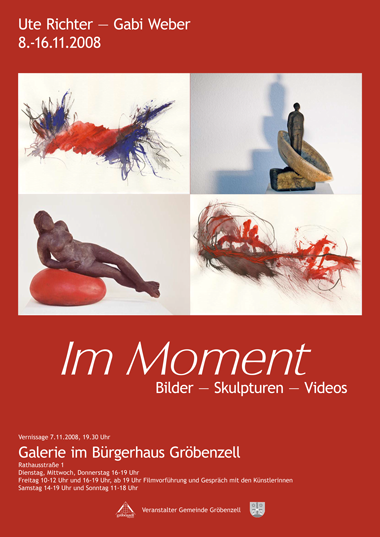 Sowohl bei der Arbeit an den in der japanischen Raku-Technik gefertigten Skulpturen von Ute Richter (Dachau) als auch im Entstehungsprozess der Bilder und Videos von Gabi Weber (Gröbenzell) spielt der Moment eine wichtige Rolle. Spontan entstehen die Formen und Farben der gezeigten Aquarelle und Zeichnungen – sozusagen aus dem Moment heraus – während die ausgestellten Skulpturen den Moment einer Bewegung oder Situation einfangen und damit sichtbar werden lassen.