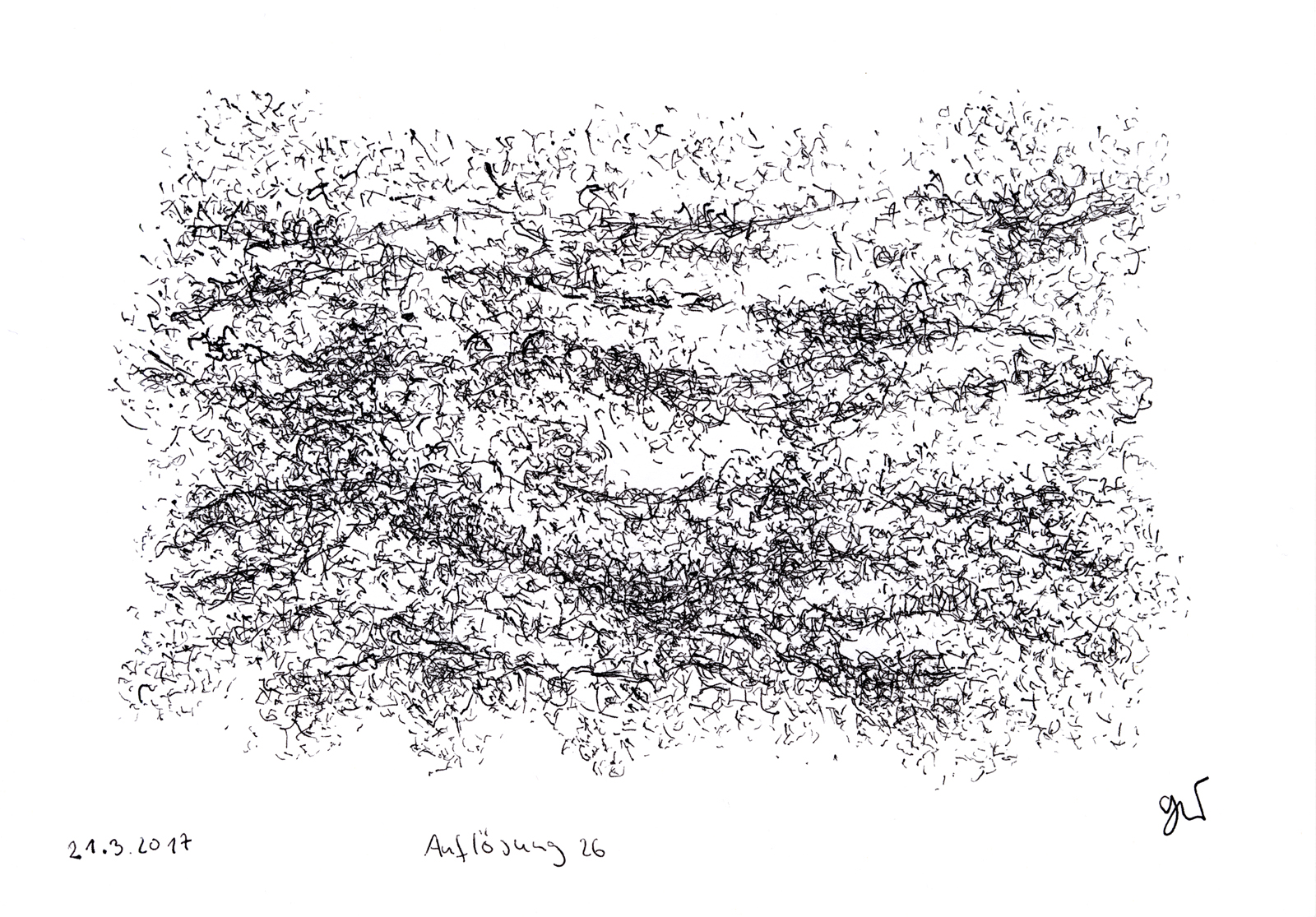 Wie kann man Auflösung darstellen? Manchmal habe ich etwas Ganzes in seine Teile zerlegt oder eine Verdichtung aufgelöst. Manchmal habe ich versucht, den Übergang zur Auflösung festzuhalten oder sogar den Endzustand, in dem das Aufgelöste nicht mehr sichtbar ist.