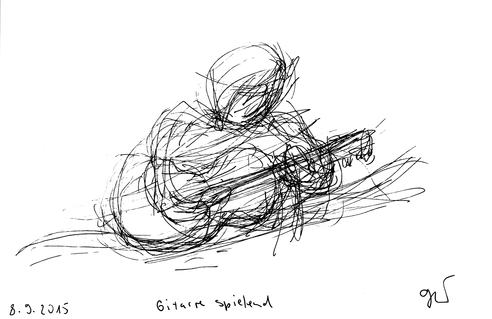 der Fahrtwind, der in die Augen bläst — die Treppe hinunter eilend — auf der Eingangstreppe sitzend — Katzen streichelnd — mit Ohrenschmerzen — mit Feuer spielen — ein Buch lesend — Gitarre spielend — den Kopf schief halten — Erschrecken spielend, die Hände vors Gesicht — am Computer hängend — auf Bäumen stehend — aus 2 Gläsern trinkend — zur S-Bahn eilend — den Geburtstagskuchen bringen — ein Kakteenblatt mitbringen — den Wind prüfend — sich um sich selbst drehend — eine Wutritze machen — Knallerbsen werfend — einfach mal abheben — an die Backe trommeln — zur Bestätigung mehrfach nicken — auf einem Bein stehen — Kräuter hacken — liebevoll modellierte Gitarrenklänge.— „wish you were here“ hörend — mit winzigen Buchstaben schreibend — immer mittendrin — sich um alles kümmernd — die Augenbrauen hochziehen — zur Gitarrenstunde rasend — vieles gleichzeitig machen — Gitarrenhände pflegen — sammeln — ein besonderer Mensch sein — sich nicht verbiegen lassen — Schwierigkeiten nicht aus dem Weg gehend — always flying
