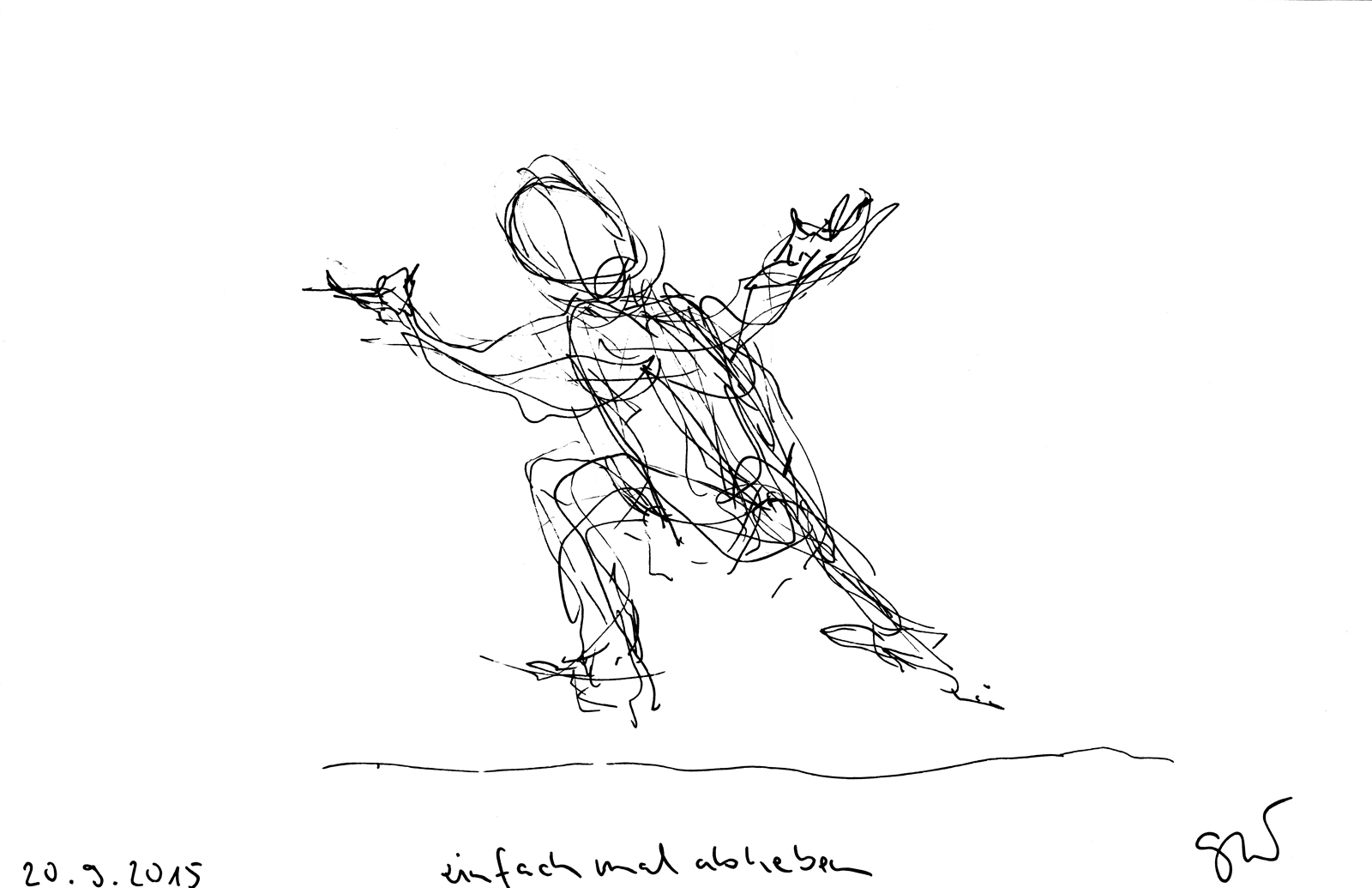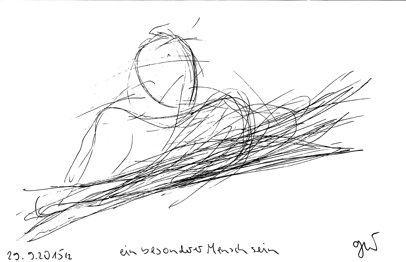Aus Anlass von Alberts 30. Geburtstag am 16. September wollte ich „Etwas von Albert“ zeigen, eine Bewegung, einen Ausdruck — ich wollte mich liebevoll an ihn erinnern, etwas für ihn Typisches in mir wachrufen. Dabei wurde ich zu meiner eigenen Überraschung, sehr konkret, kam sehr schnell von einer ganz abstrakten Umsetzung der gewählten Erinnerung zu einem figürlichen Ergebnis. Dieses ist nicht porträthaft, da jeder Versuch, Albert naturalistisch zu zeichnen, eine schmerzhafte Enttäuschung für mich wäre.