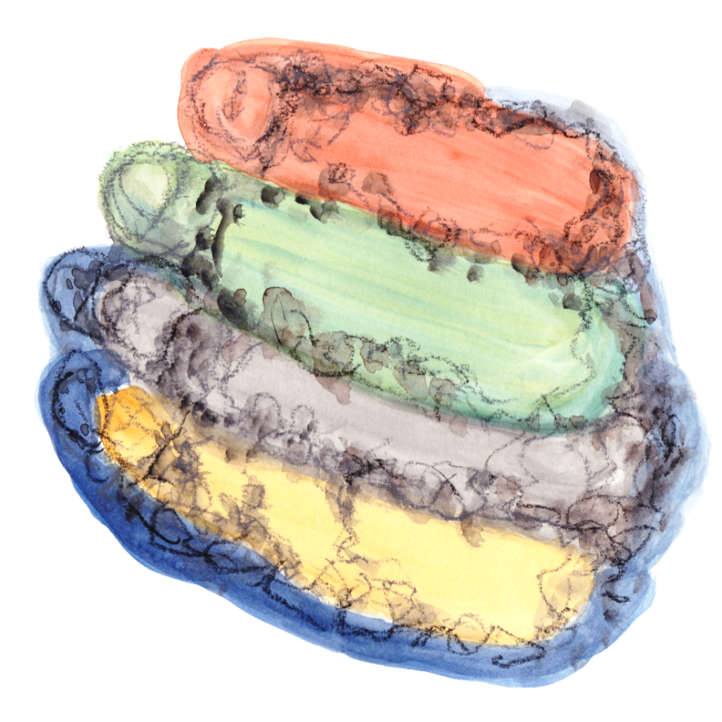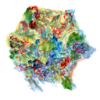 Die Bilder für ein interaktives Musikprojekt im Internet, die JHMscape, haben keine festgelegte Blickrichtung und auch bei ihrem Herstellungsprozess arbeite ich von wechselnden Seiten an ihnen. In der JHMscape tauchen sie immer in Bewegung auf — daher der Name “Turntables”.