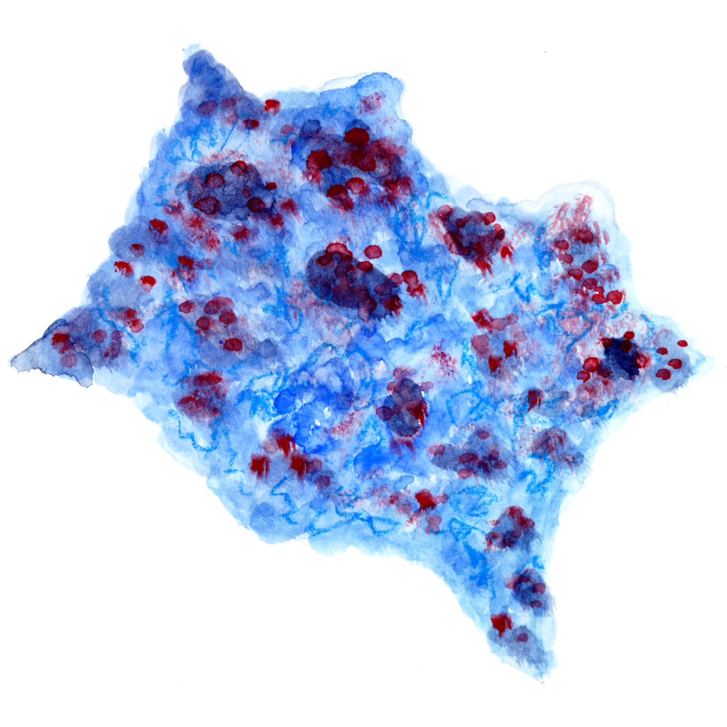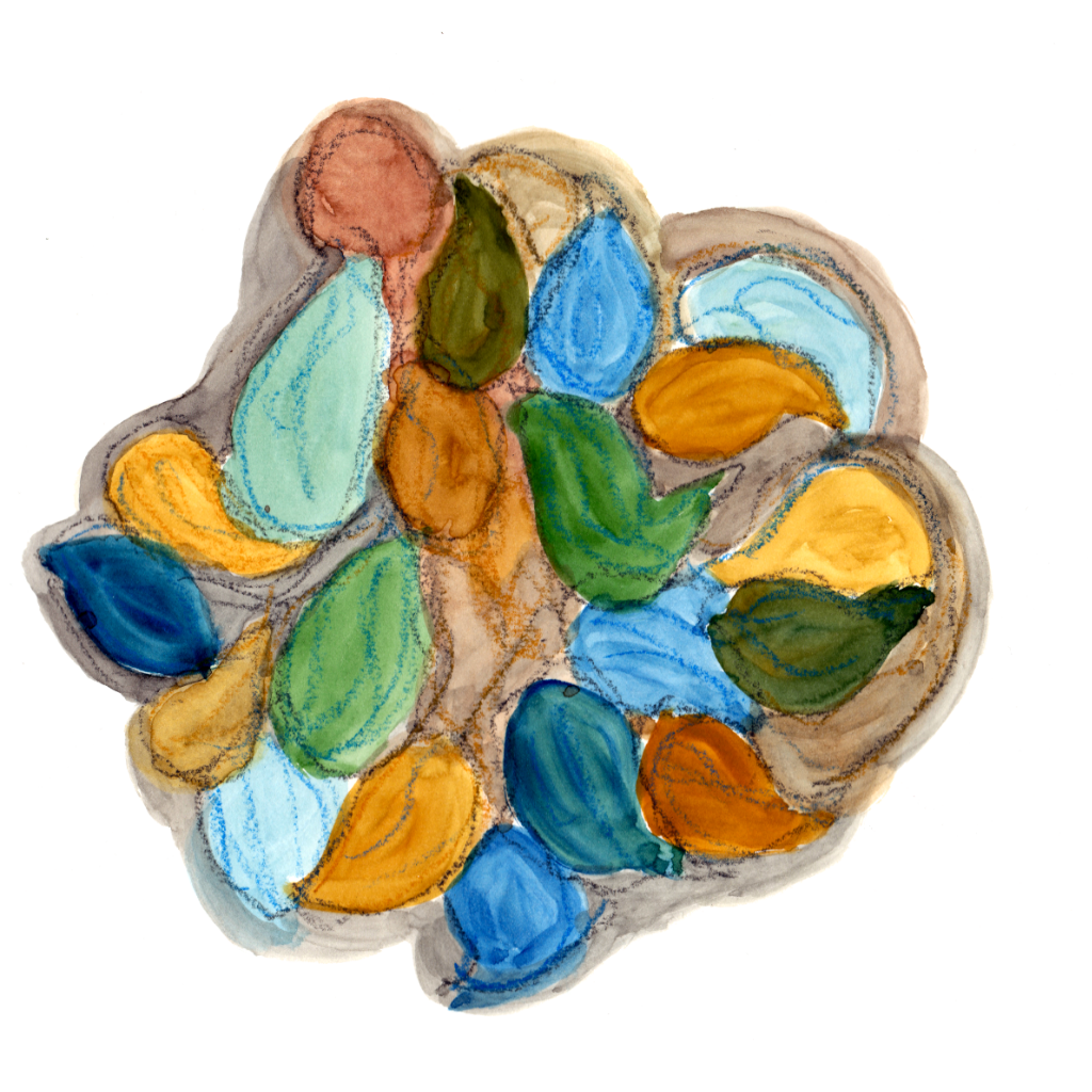Die Ausdehnung der 43 Bilder dieser Serie, entstanden vom 21. November 2019 bis 9. Januar 2020, wird durch ein Sechseck mit ca. 10 cm Kantenlänge bestimmt.