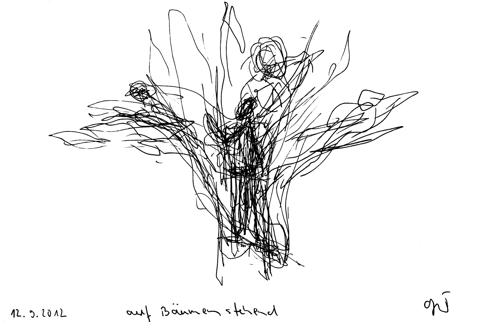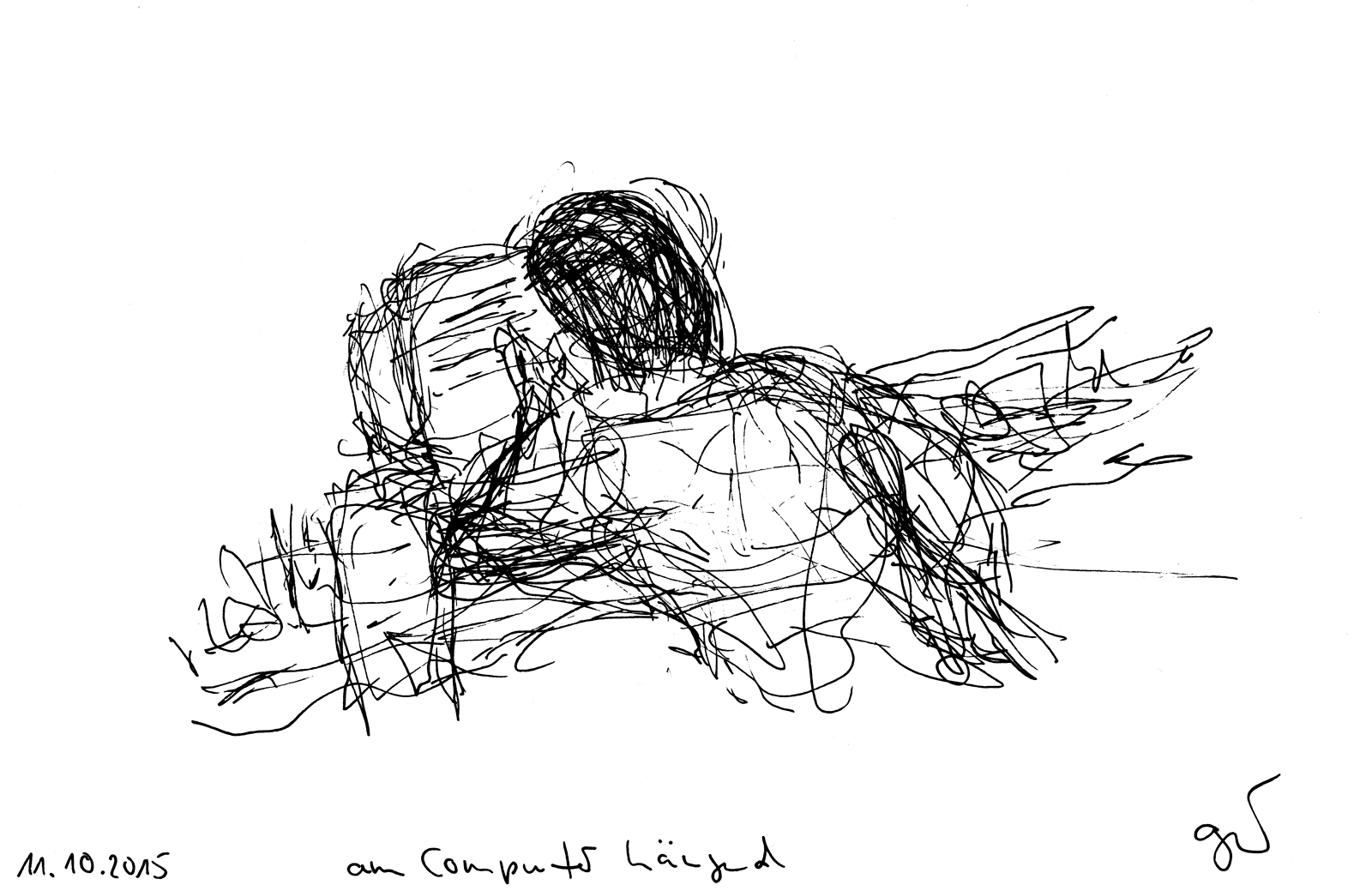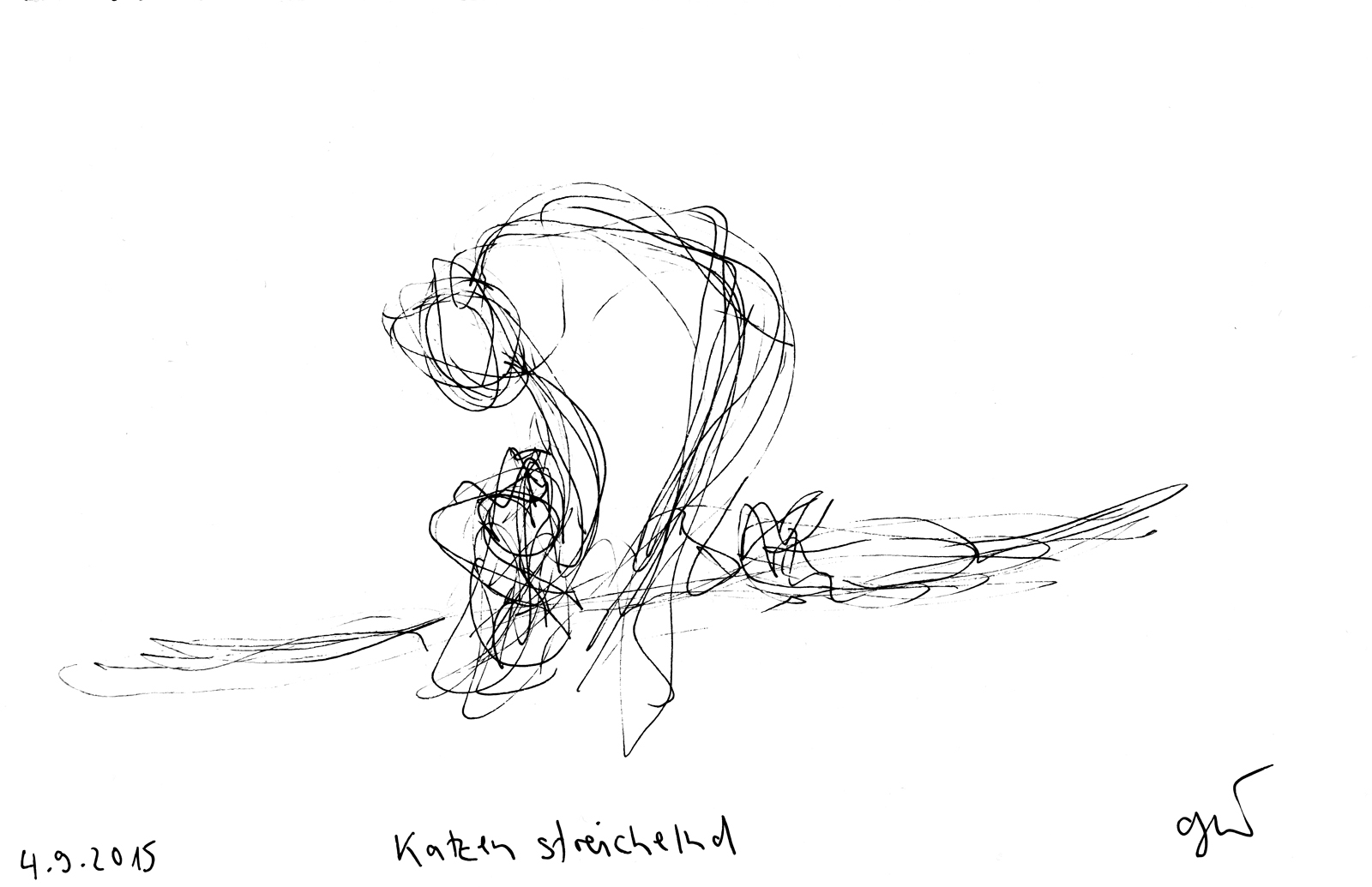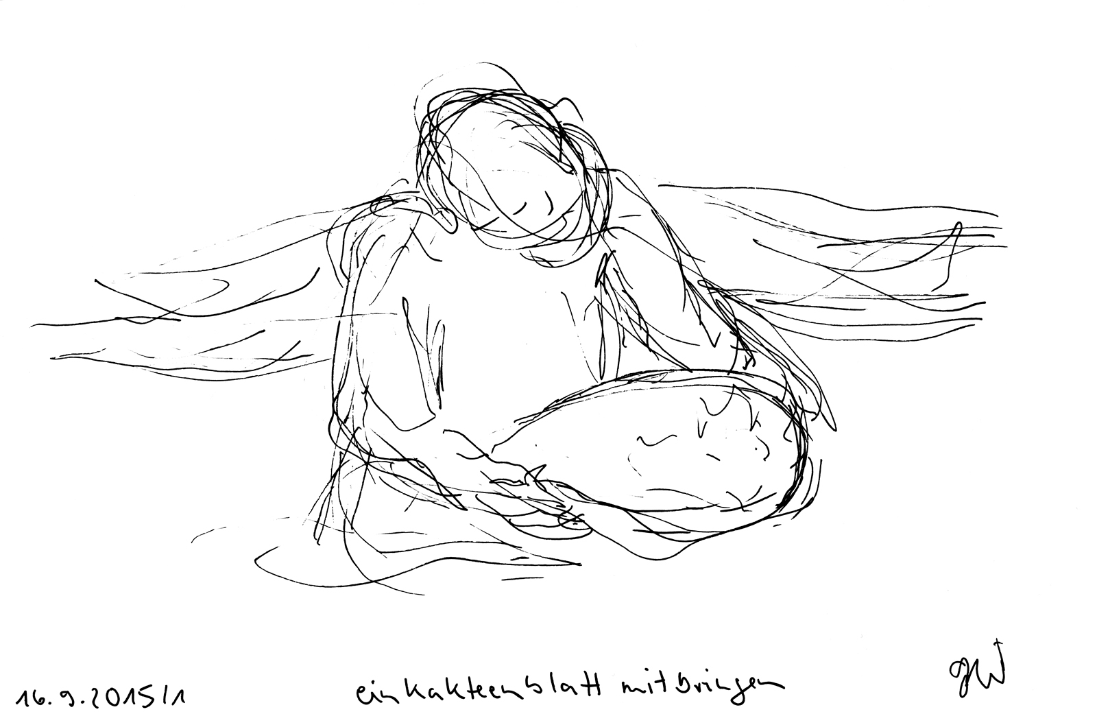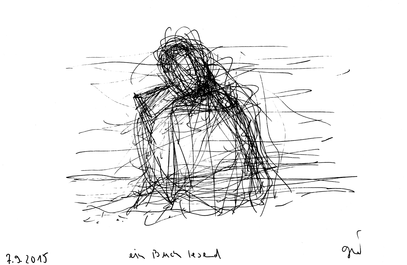 Aus Anlass von Alberts 30. Geburtstag am 16. September wollte ich „Etwas von Albert“ zeigen, eine Bewegung, einen Ausdruck — ich wollte mich liebevoll an ihn erinnern, etwas für ihn Typisches in mir wachrufen. Dabei wurde ich zu meiner eigenen Überraschung, sehr konkret, kam sehr schnell von einer ganz abstrakten Umsetzung der gewählten Erinnerung zu einem figürlichen Ergebnis. Dieses ist nicht porträthaft, da jeder Versuch, Albert naturalistisch zu zeichnen, eine schmerzhafte Enttäuschung für mich wäre.
