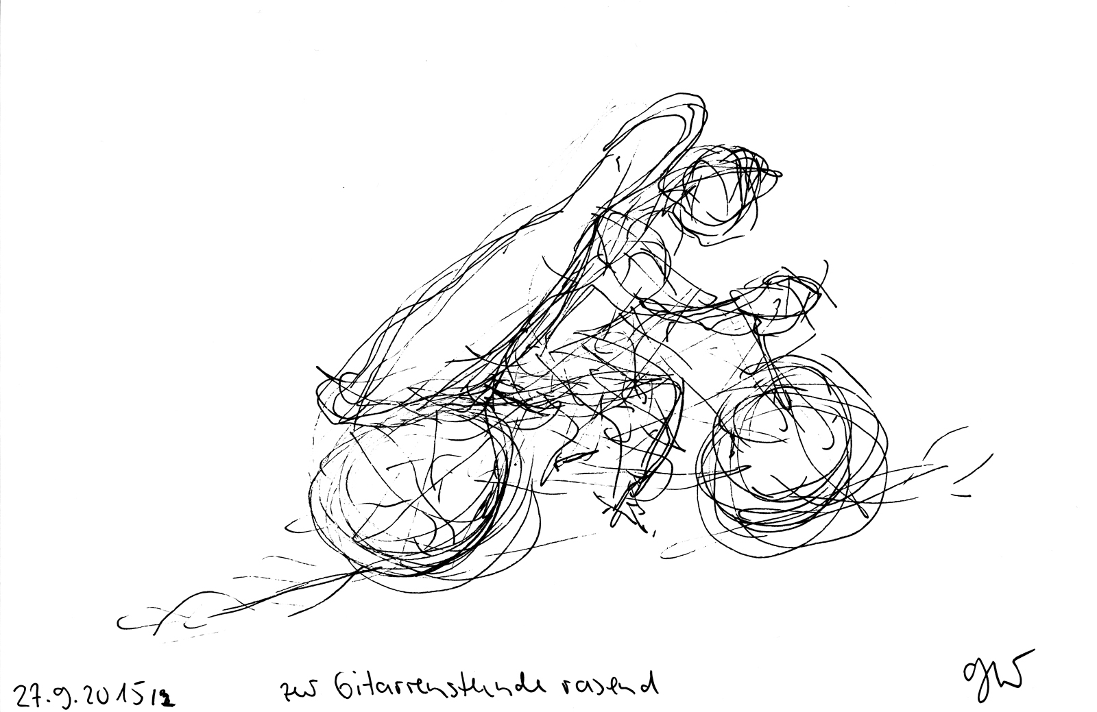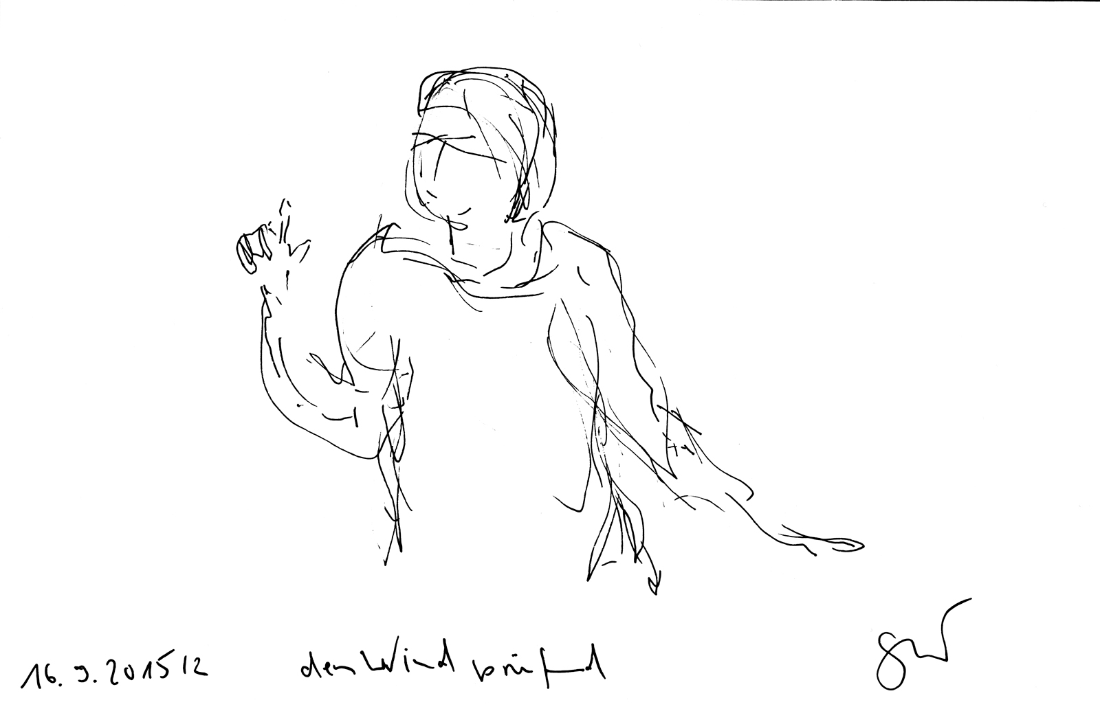 der Fahrtwind, der in die Augen bläst — die Treppe hinunter eilend — auf der Eingangstreppe sitzend — Katzen streichelnd — mit Ohrenschmerzen — mit Feuer spielen — ein Buch lesend — Gitarre spielend — den Kopf schief halten — Erschrecken spielend, die Hände vors Gesicht — am Computer hängend — auf Bäumen stehend — aus 2 Gläsern trinkend — zur S-Bahn eilend — den Geburtstagskuchen bringen — ein Kakteenblatt mitbringen — den Wind prüfend — sich um sich selbst drehend — eine Wutritze machen — Knallerbsen werfend — einfach mal abheben — an die Backe trommeln — zur Bestätigung mehrfach nicken — auf einem Bein stehen — Kräuter hacken — liebevoll modellierte Gitarrenklänge.— „wish you were here“ hörend — mit winzigen Buchstaben schreibend — immer mittendrin — sich um alles kümmernd — die Augenbrauen hochziehen — zur Gitarrenstunde rasend — vieles gleichzeitig machen — Gitarrenhände pflegen — sammeln — ein besonderer Mensch sein — sich nicht verbiegen lassen — Schwierigkeiten nicht aus dem Weg gehend — always flying