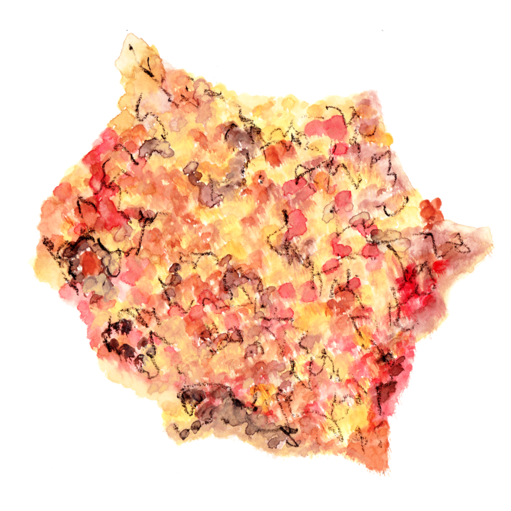 Die Ausdehnung der 43 Bilder dieser Serie, entstanden vom 21. November 2019 bis 9. Januar 2020, wird durch ein Sechseck mit ca. 10 cm Kantenlänge bestimmt.